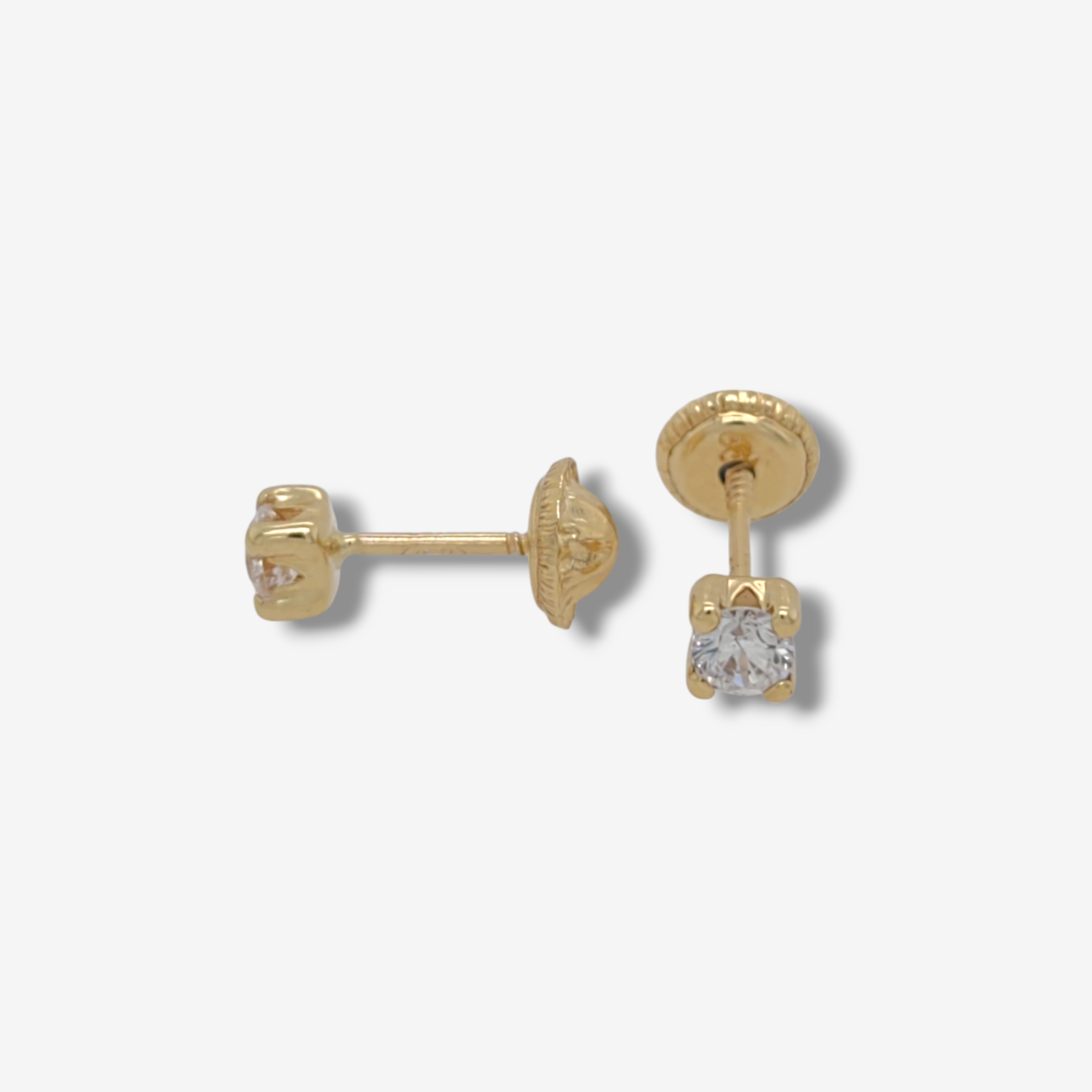 Zarcillos (3 mm) Screwback 4 Prongs Base Cuadrada – Oro Amarillo 18Kts