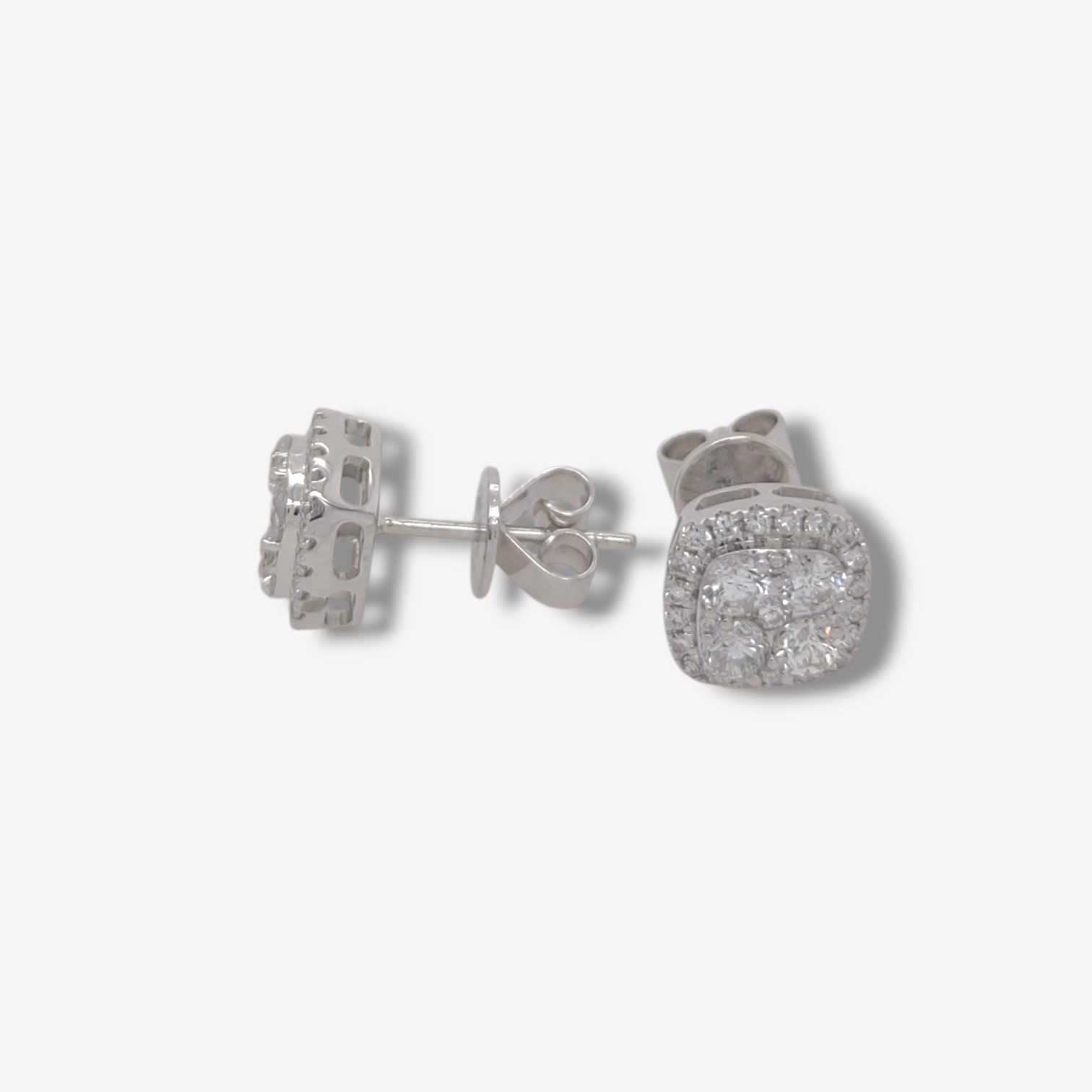 Zarcillos (8.25 x 8.25 Ct) Post Diamantes Naturales Cushion c/ Halo (0.85 Ct) – Oro Blanco 18Kts
