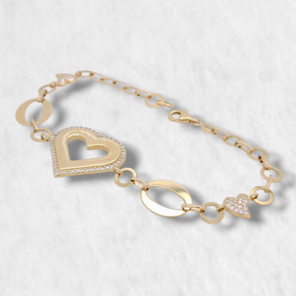 Brazalete (19.5 cm) Corazon Calado c/ Marco Zircones – Oro Amarillo 14Kts