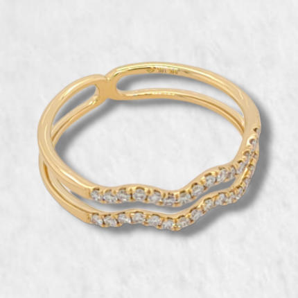 Anillo Doble Linea Ondas Diamantes Pave – Oro Amarillo 18Kts