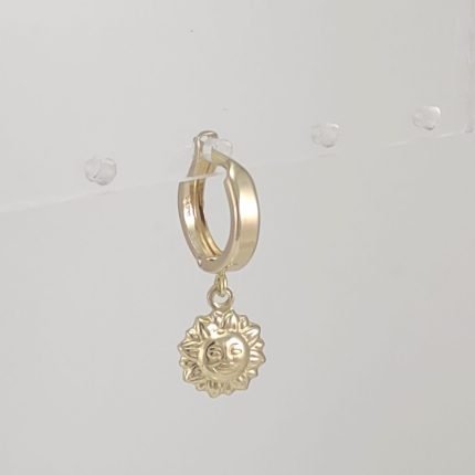 Zarcillo Huggies Unitario (Ø 11 mm) C/ Sol Puff – Oro Amarillo 14Kts