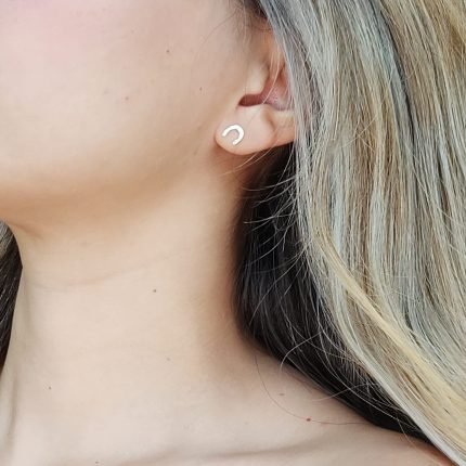 Zarcillos (7 x 7 mm) Herradura (Post) c/ Zircones – Oro Amarillo 18Kts