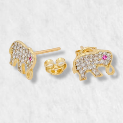 Zarcillos Post c/ Elefante & Zircones – Oro Amarillo 14Kts