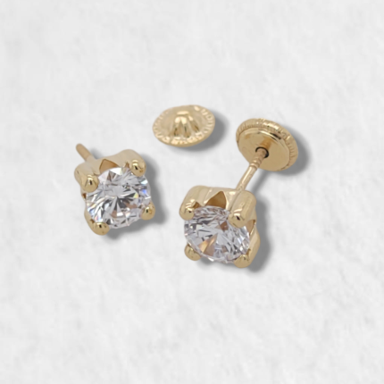 Zarcillos Abridores/Screwbacks Piochas 4 Prongs Base Cuadrada c/ Zircon (5 mm) – Oro Amarillo 18 Kts