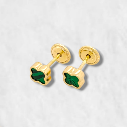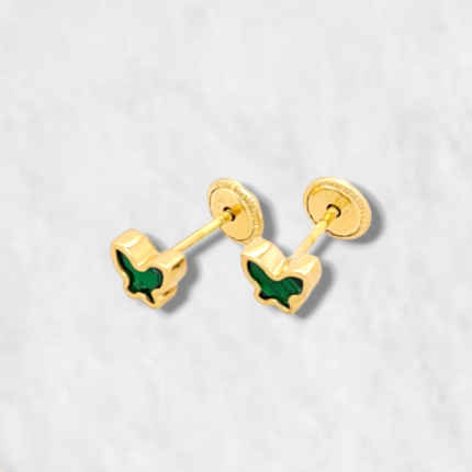 Zarcillos (5 x 4 mm) Mariposa Malaquita – Oro Amarillo 18Kts