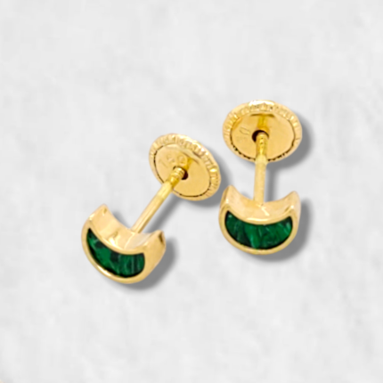 Zarcillos (5 x 4 mm) Luna Malaquita – Oro Amarillo 18Kts