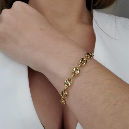 Brazalete (15.5 cm) Esclava ID (6 x 26 mm) Tejido Us Link Macizo (2.6 mm) c/ Cierre Lobster – Oro Amarillo 18Kts