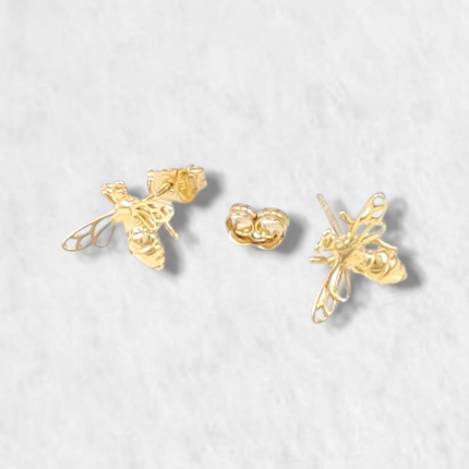 Zarcillos Post (13 x 9 mm) Abeja – Oro Amarillo 14Kts