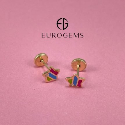 Zarcillos (5 x 5 mm) Estrellas c/ Esmalte & Zircon – Oro Amarillo 18Kts