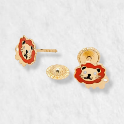 Zarcillos (6 x 7 mm) Leon c/ Esmalte (Screwback/Abridores) – Oro Amarillo 14Kts