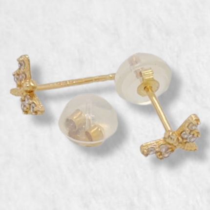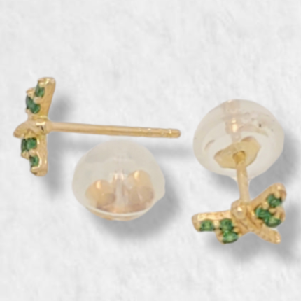 Zarcillos (6 x 4 mm) c/ Libelula (Cierre de Oro & Silicon) – Oro Amarillo 14Kts