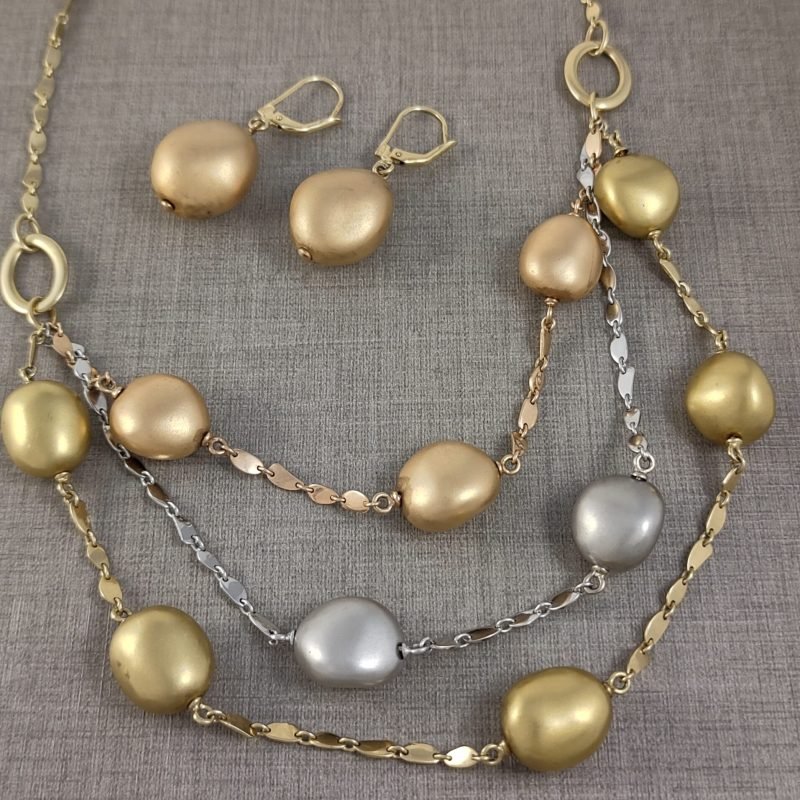 Set Cadena 3 Vueltas & Zarcillos (Satinado) – Oro Tres Tonos 14Kts
