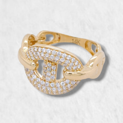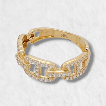 Anillos Eslabones Mariner c/ Zircones Pave – Oro Amarillo 14Kts
